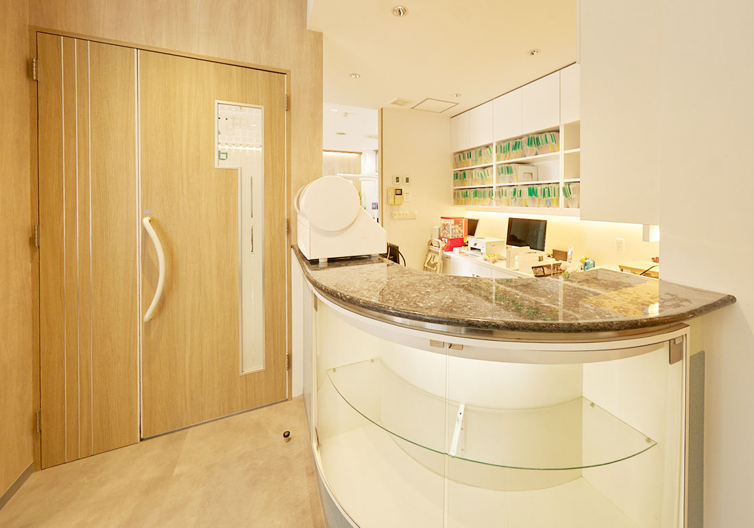 受付のそばには歯ブラシなどデンタルグッズもご用意しました。