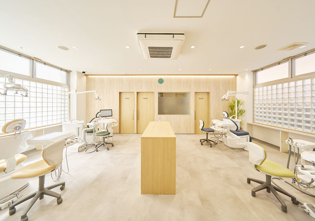 歯科医院学校や仕事帰りでも通院しやすいよう、木曜を除く平日と土曜の19時まで診療を行っています。駐車場は6台分ご用意しておりますので、お車でも通いやすい歯科医院です。